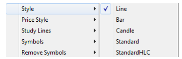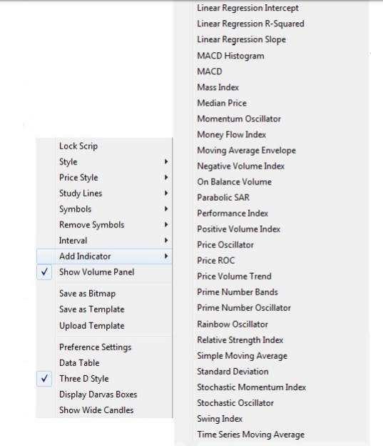 - Some of the different charts available for your usage are shown below including Line, Bar, Candle charts etc.