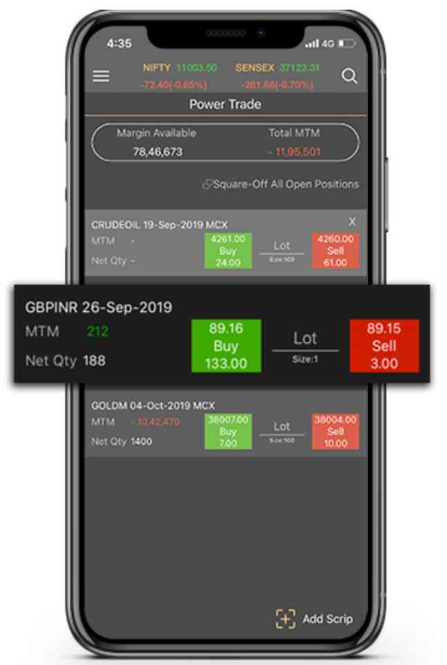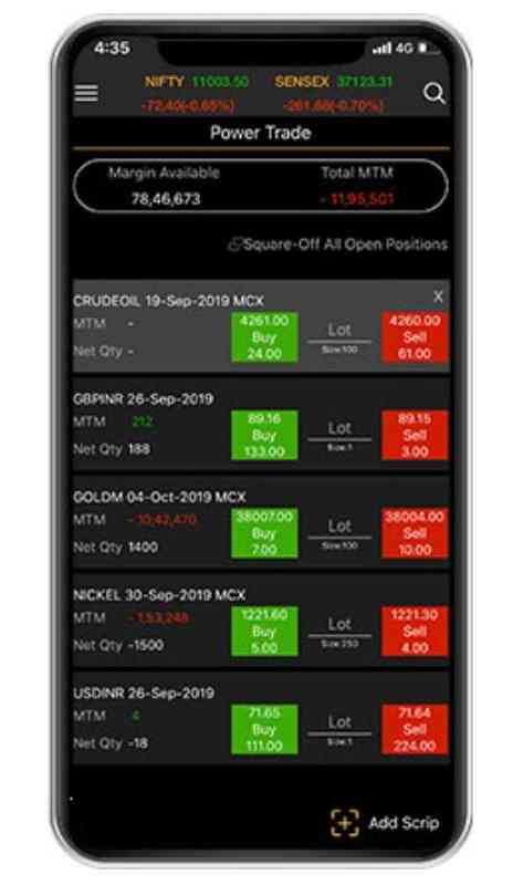 To trade in all these segments and scrips just click on Power Trade in your app, and start adding all the above scrips simply by tapping the ‘+’ button.