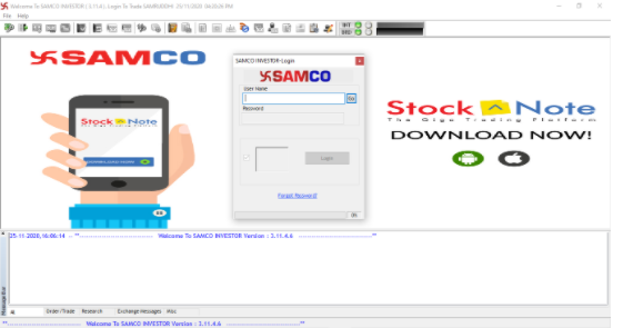 Once you have downloaded the Samco Trader, a window will appear on your screen just like below-