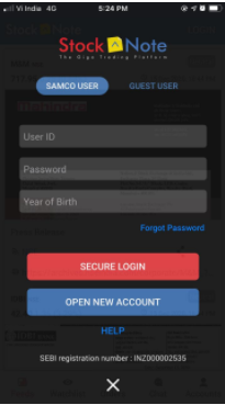 In case, you are not an existing customer of Samco, then you can click on the “Guest User” box and without any credentials, you can analyze how their application works and what are its features.