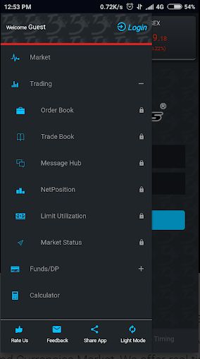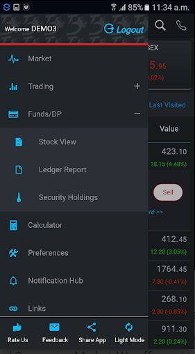 • Links – This option shows website links for NSE, BSE, MCX, NCDEX, MCXSX and SEBI. It comes handy when you want to see any information from these sites.