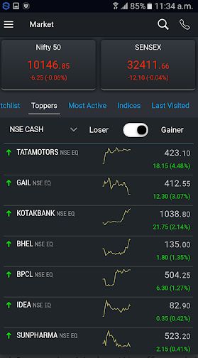 • The Sparkline chart shows all added scrips and the current market trend of those scrips.
