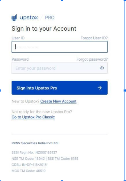 To start using Upstox Pro Web 3.0, you need to just click on the link that takes you to the login page and fill in the unique user ID and password.