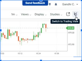 - The third button is for viewing the technical chart of the scrip. You can switch to TradingView charts by clicking the button on the top-right corner.