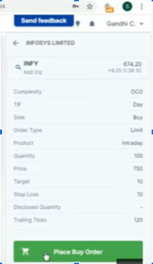 There is an additional stop loss and target button, which can be used in placing a cover order and a bracket order.