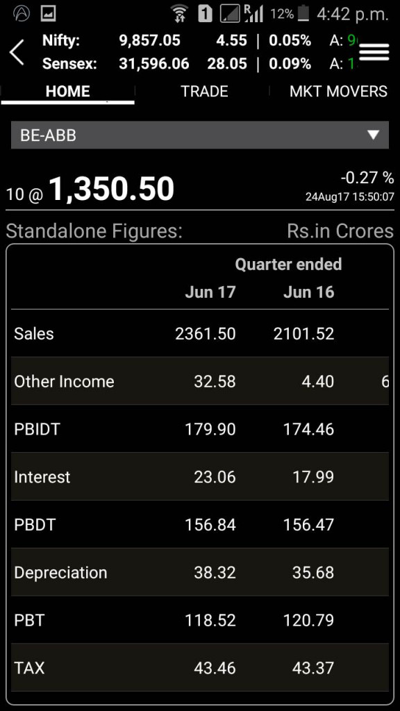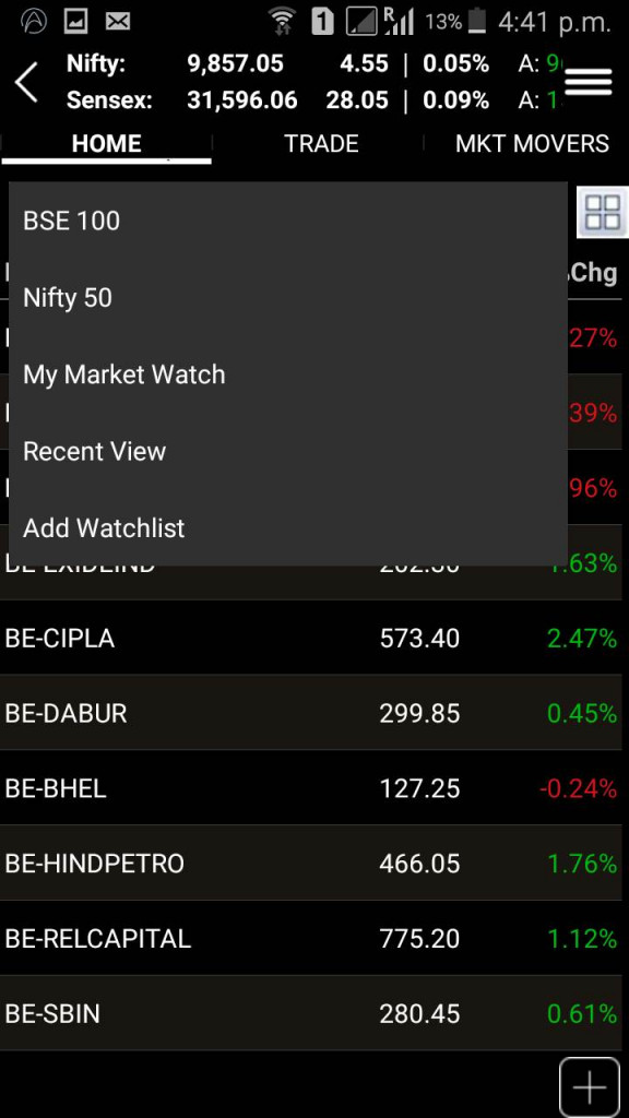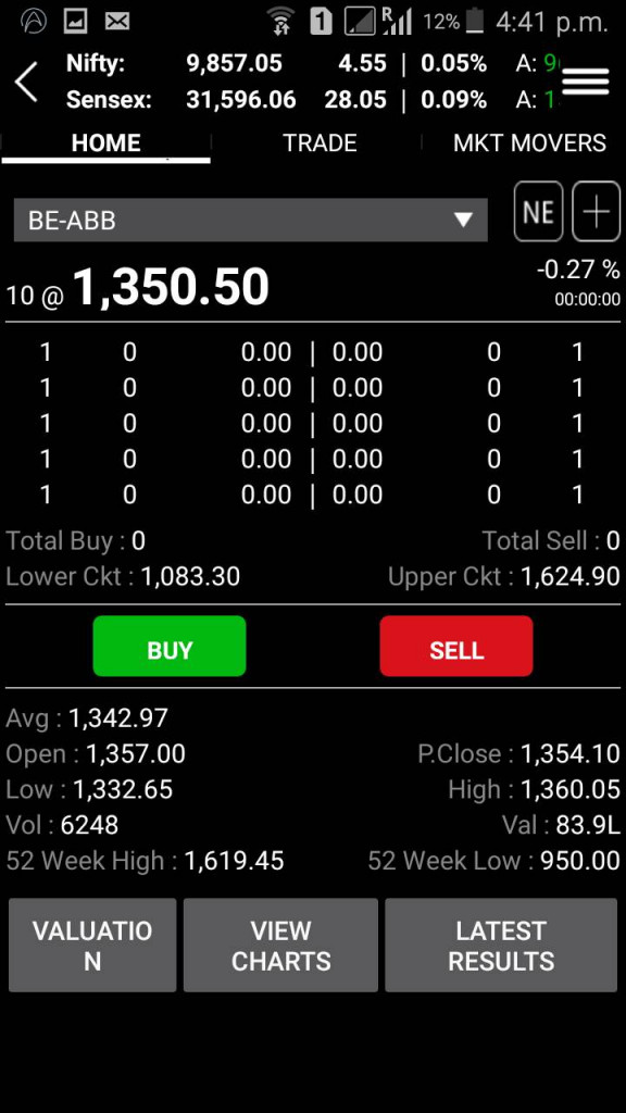 - You can tap onto a specific scrip and view some basic details about the stock with an option to view complete details, charting flow, latest market results along with an option to buy and sell the stock. In a way, this screen can be termed as the ‘Scrip Home Page’.