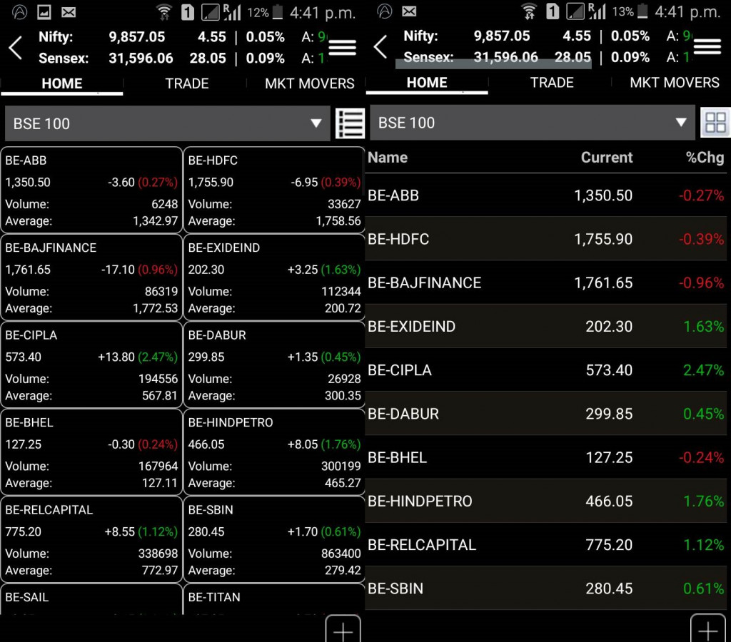 - Furthermore, you can choose to view the scrips either in a grid/tabular format for as part of a list. At the same time, there are very limited customization opportunities offered by the mobile app.