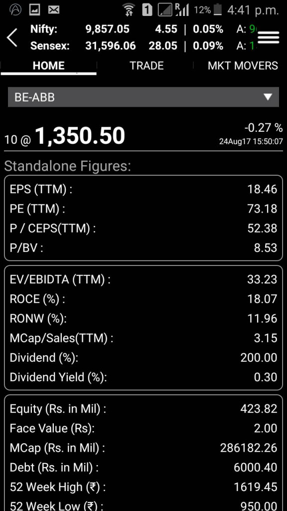 - To view complete details about a scrip, you can tap on ‘Valuation’ tab and the following details such as EPS (Earnings per share), PE (Price Earnings ratio), ROCE (Return on Capital Employed) and so on. These details will give you a good idea about the performance of the stock till date.