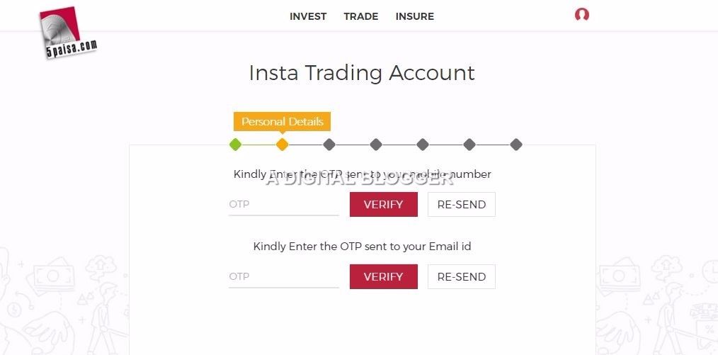 This is that step where you validate your contact details including your email and mobile number. This validation happens through the OTP (One-time passwords) sent to your registered contact details.