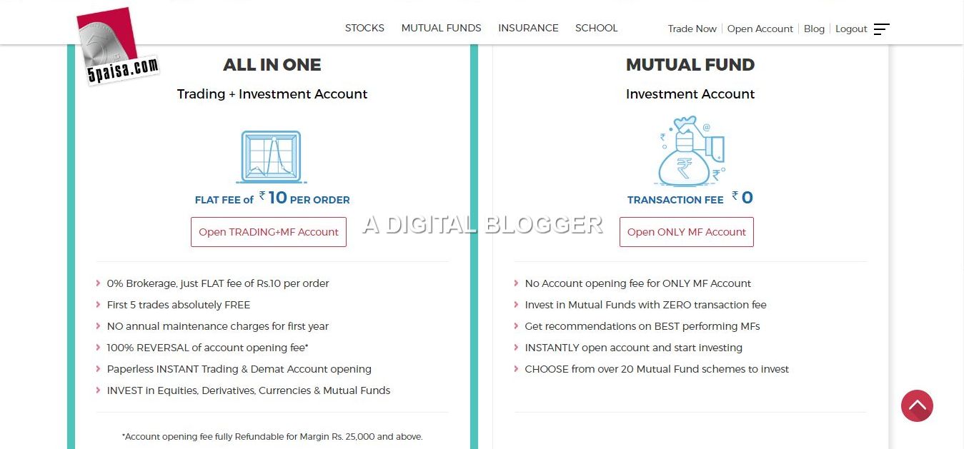 The 5Paisa AMC Charges and account opening fees are free if your initial margin is ₹25,00 or more. There are other charges that are not generally revealed by the stockbrokers called DP Charges. We also talk about DP charges in 5Paisa at length in our articles at A Digital Blogger.