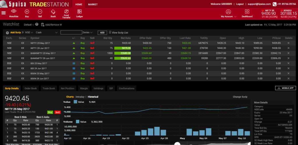 - Intraday as well as historical data available for technical and fundamental analysis respectively.