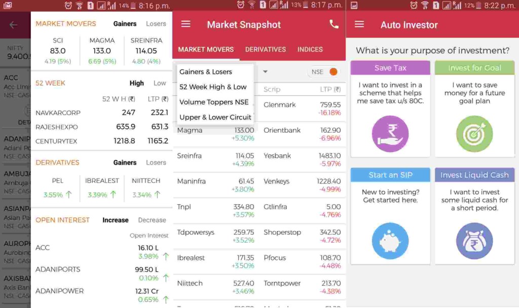 The platform lets you invest in Mutual Funds as well apart from other financial instruments. The application is known for fast execution time and seamless user experience.