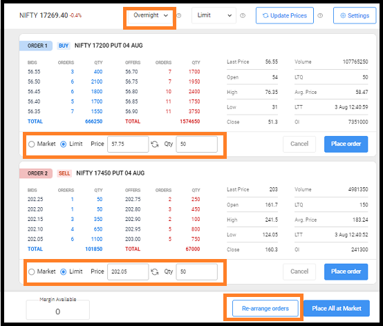 - Rearrange the order and select the validity of the order (Overnight or Intraday)