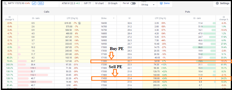 - To give you a clear idea, let’s suppose you picked Nifty PE at 17200 and placed a sell order for Nifty PE at 17450.