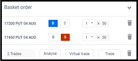 Basket order as the name suggests is the type of order where you can add multiple positions for options trade and place all the orders simultaneously.