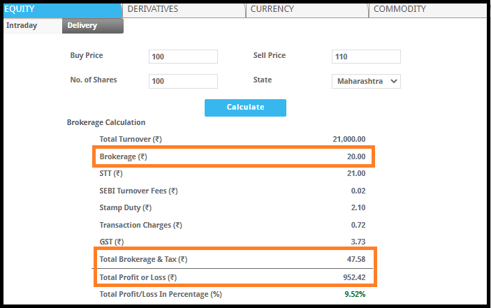 To simplify it, here is the brokerage calculator that evaluates all charges imposed by the broker.