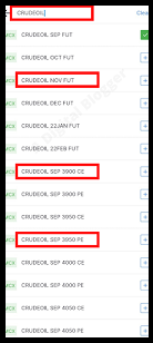 • A list of various futures and options will appear. FUT is for the futures, CE for call options, and PE for the put options