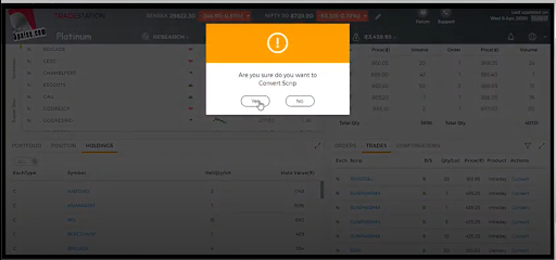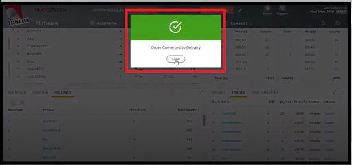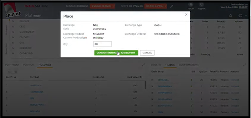 A pop-up window will appear on the screen. By checking all the information, click on ‘Convert Intraday to Delivery’.