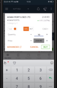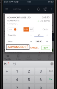 ➡️ To put the stop loss, bracket order, or cover order, click on the ‘Advanced Buy’ option.