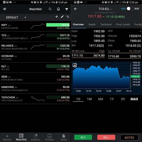 The app can be used to access data, reports and live research calls. The users also have access to the back office details like ledger balance, holdings, bills etc. The application has excellent features, however, it lacks user-friendliness.