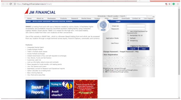 SMART Net is a web portal which serves as an online trading front end for the JM clients. One of the best reasons for some to trade through the SMART Net is the ease of access irrespective of location or device. Also, one may trade-in equity, future & options commodity and currency through a single terminal using the SMART Net.