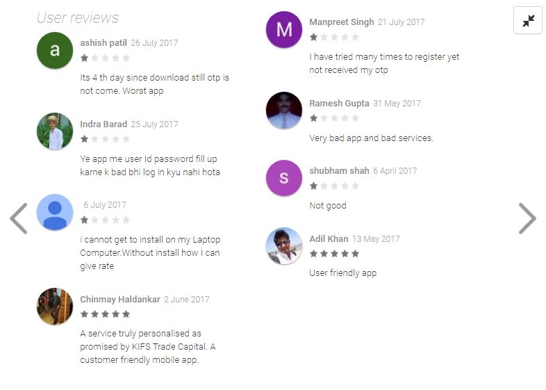 Not even a single feedback from the clients of the full-service stockbroker has received even a single response. Google play store is one good platform to hear user feedback and provide them with a quick response and a resolution time period. Furthermore, it helps to improve your own product in the first place.
