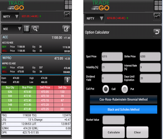 - The app allows tracking of the order book, trade book, market depth, stock portfolio etc