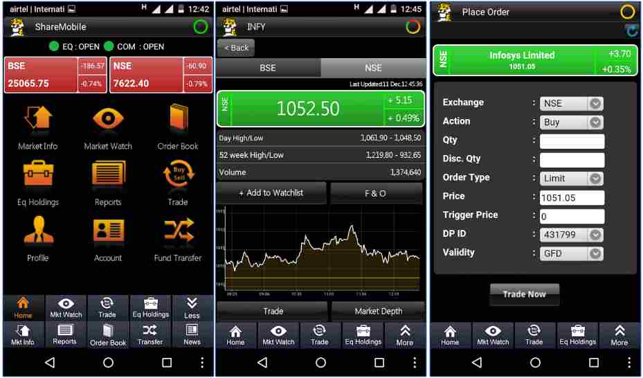 शेयरख़ान के पास डेस्कटॉप साथ ही साथ मोबाइल दोनों के लिए ट्रेडिंग सॉफ्टवेयर की जोङी है. यहाँ पर उसका विवरण है: