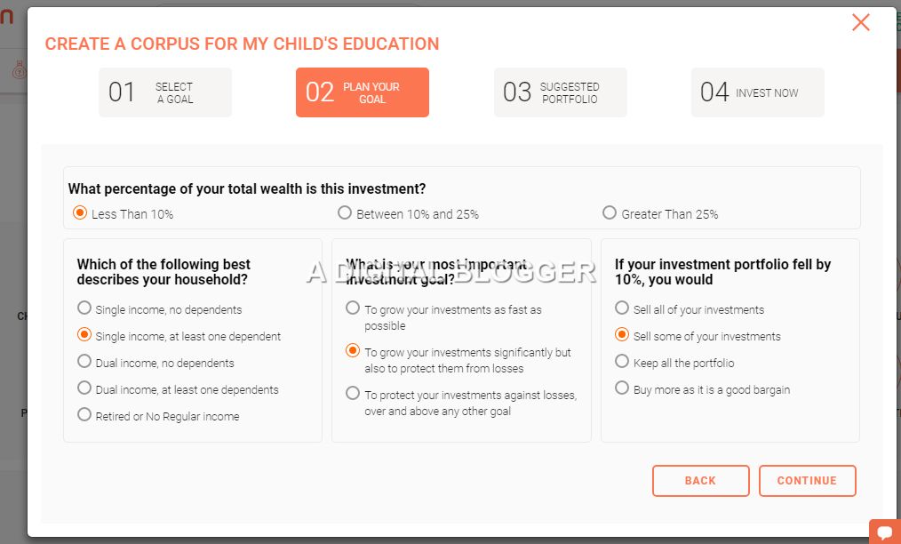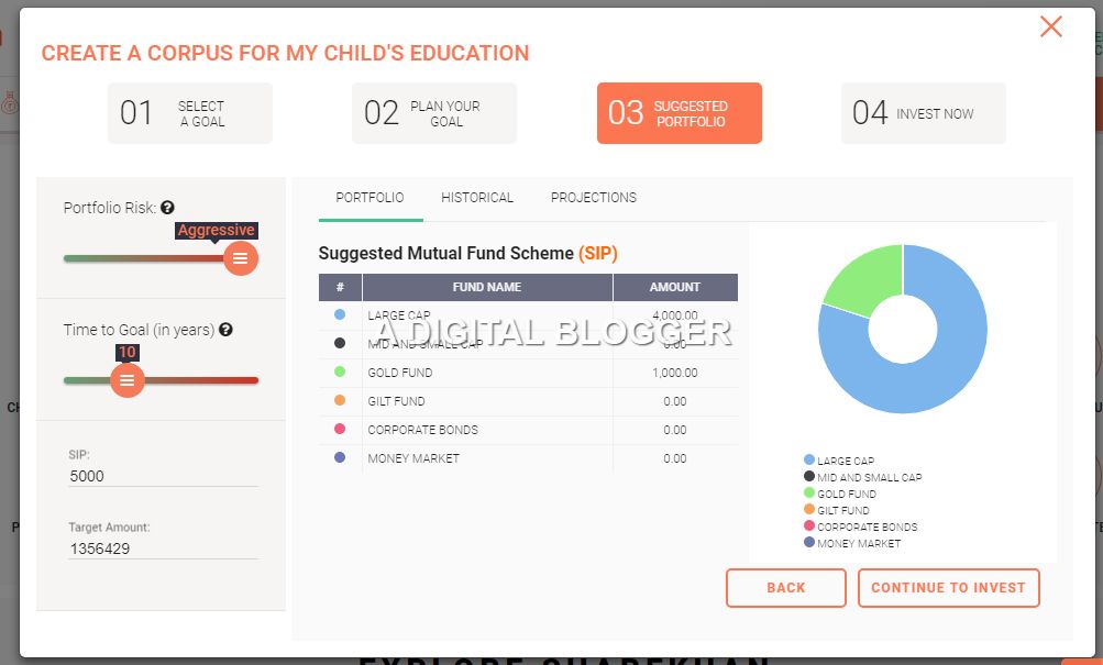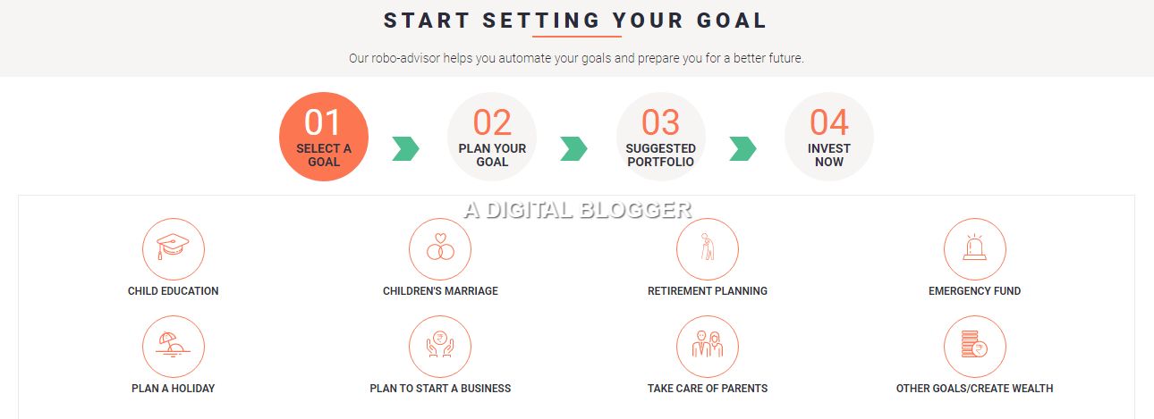 The service considers your risk appetite and corresponding behaviour and then provides a plan towards your achieving your goal. This goal can be children’s education, marriage, foreign trips, house a house or car and so on. At the same time, you also get the option to create different plans for your self-based on your short and long-term goals.