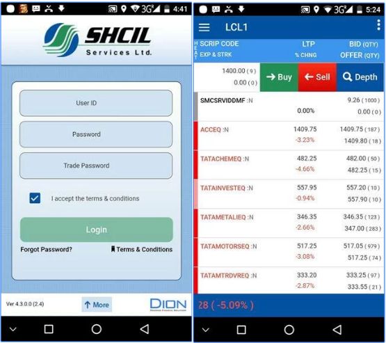 SHCIL provides an in-house mobile trading application which is pretty basic in the user flow, features and overall user experience.