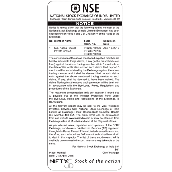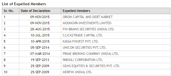 For further reference, here are a few stockbrokers that have either been Expelled through NSE: